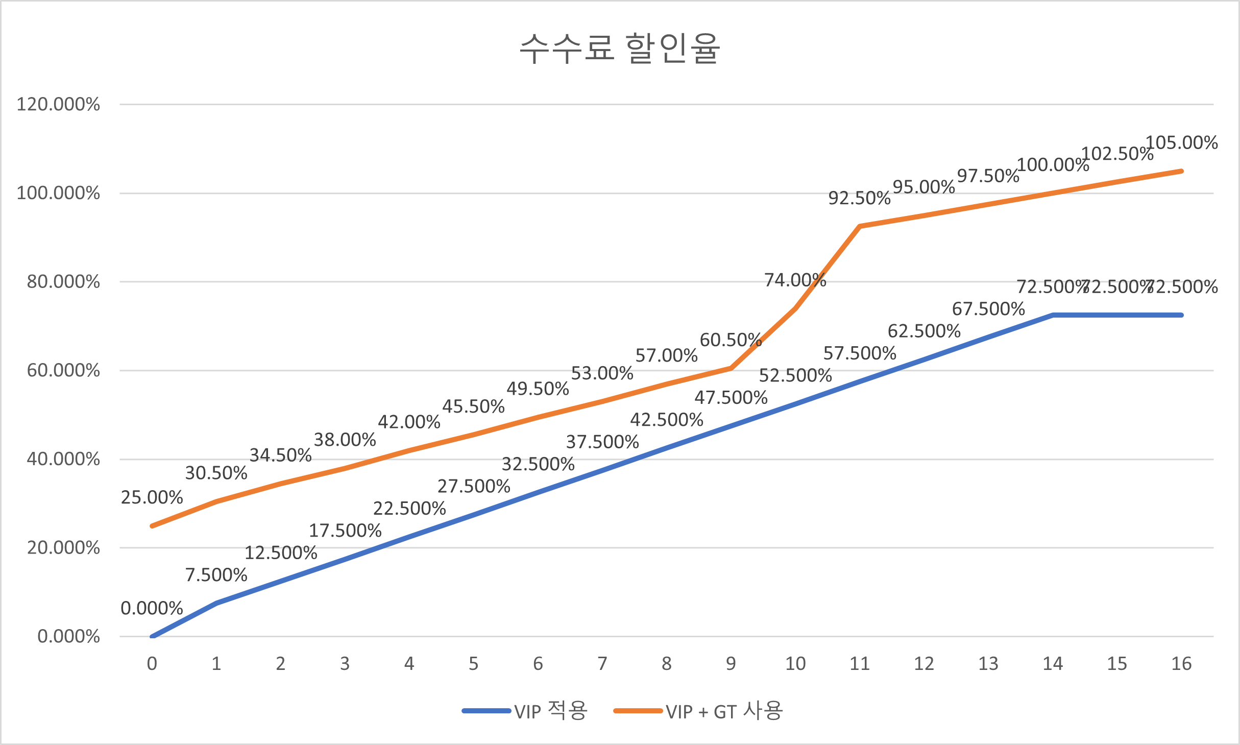 GT로 수수료를 지불할 경우 VIP 수수료 할인율이 더 올라갑니다.