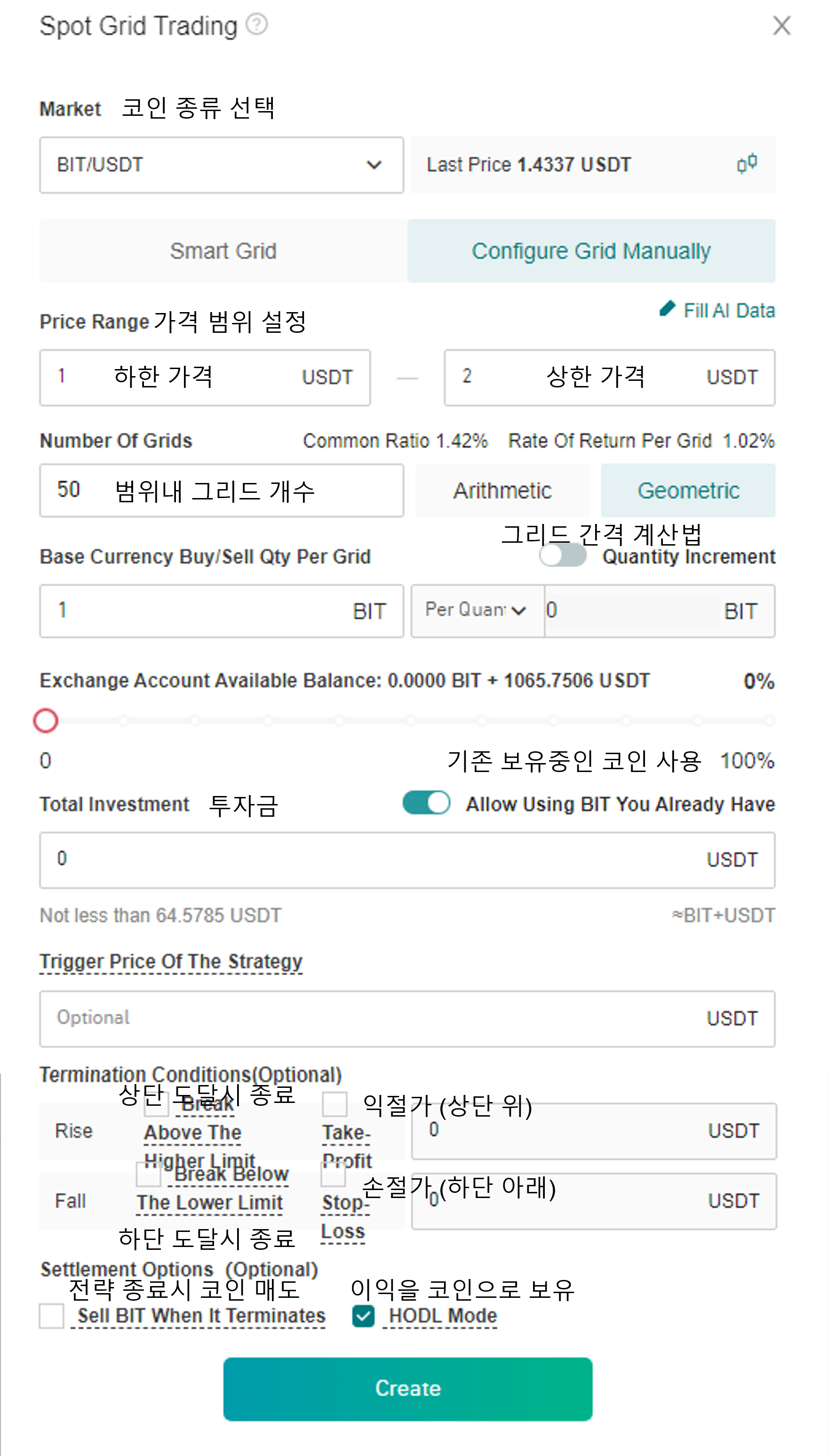 Price Range : 그리드 상한, 하한을 설정합니다. 전략의 핵심적 요소입니다.