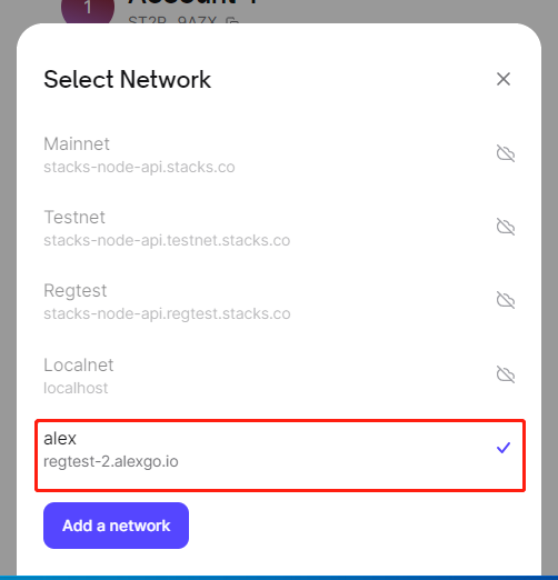 1. Hiro Wallet을 ALEX 테스트넷에 연결합니다.