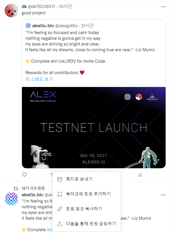 ALEX 테스트넷 바운티 테스트 참여코인/이벤트 2021. 10. 8. 20:51