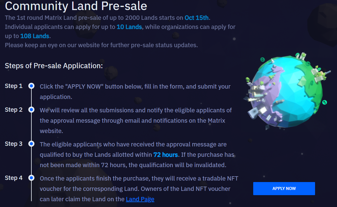 Matrix Land Pre-sale 참여코인/이벤트 2021. 10. 14. 09:50