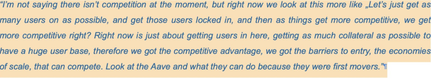 Aave가 시장에서의 선점자였기 때문에 할 수 있었던 일들을 보세요AMA에서 또한 사용자 확보의 중요성에 대해 강조하였습니다.