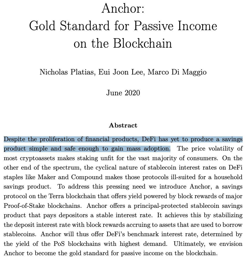 금융 상품의 확산에도 불구하고 Defi는 아직 대중화될 만큼 간단하고 안전한 저축 상품을 생산하지 못하고 있습니다. Anchor Protocol 또한 많은 사용자를 확보하는 것을 가장 중점으로 두고 있습니다.