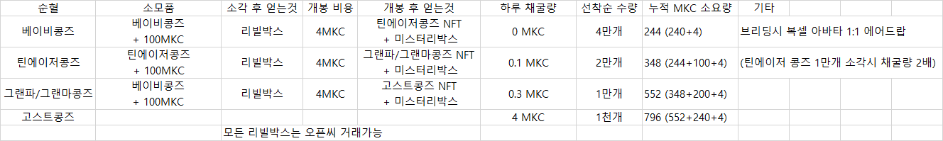 리빌 박스를 오픈하기 위해서는 4MKC가 필요하며 그랜드파콩즈 또는 그랜드마 콩즈를 얻을 수 있습니다.