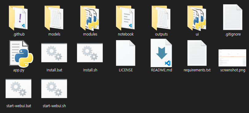 conda create -n whisper python=3.10.11 conda activate whisper pip install -r requirements.txt python app.pyinstall.bat, start-webui.bet 전부 venv 가상환경 사용하는 명령어들을 배치 형태로 만들어둔거라