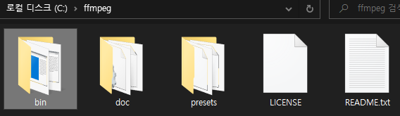 FFmpeg 을 적당한 경로에 압축해제하고 ffmpeg > bin 폴더를 시스템 환경변수에 등록한다.